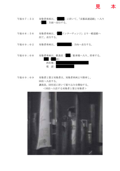 調査報告書例 - 浮気調査